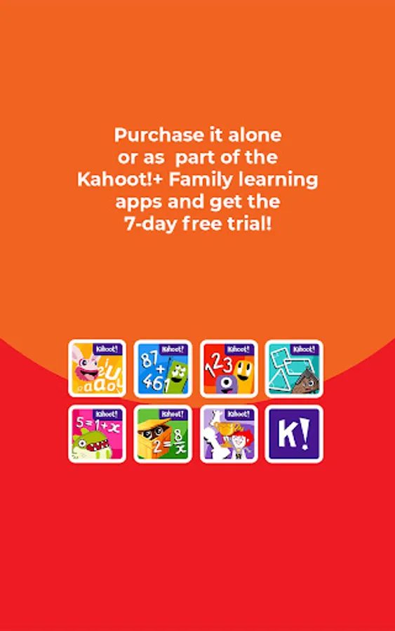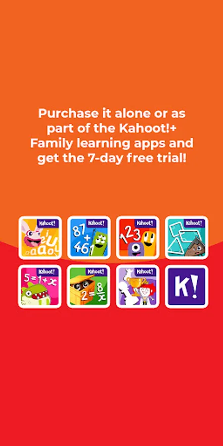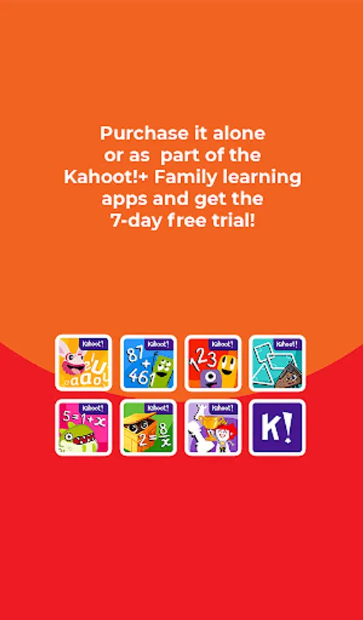 Access to the contents and functionality of this app requires a subscription to Kahoot!+ Family. The subscription starts with a 7-day free trial and can be cancelled at any time before the end of the trial.