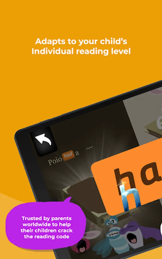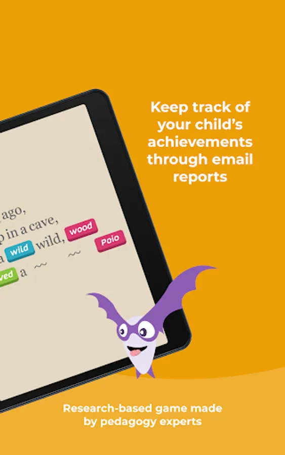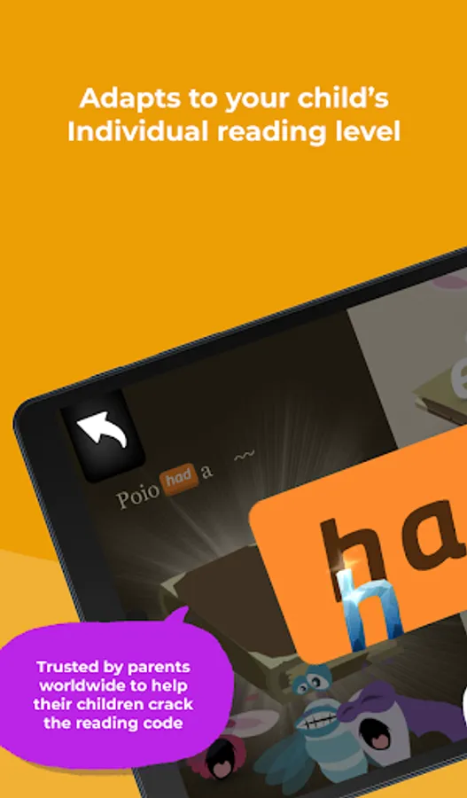 Letters and their corresponding sounds are gradually introduced as your child explores the world, and your child will use these sounds to read bigger and bigger words. The game will adapt to the child's level and every word they master will be added to a fairy-tale story, so that the child feels like they are writing the story themselves.