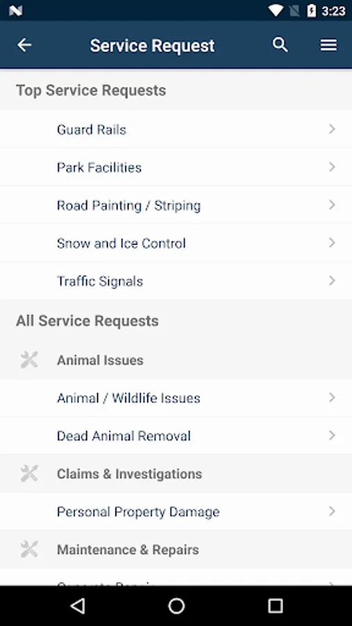 * The app also has the ability to find your Service Requests, articles on services, county residential properties and property owners."