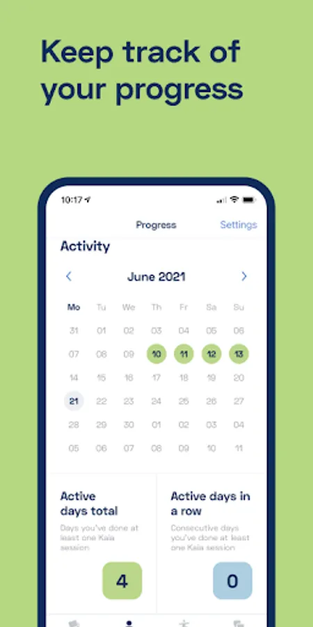 Kaia COPD offers you an individual therapy program that is tailored to your needs. Every day you will receive a mix of exercises including knowledge units, relaxation and movement. All content was developed in collaboration with lung specialists in order to offer you effective methods of pulmonary rehabilitation at home.