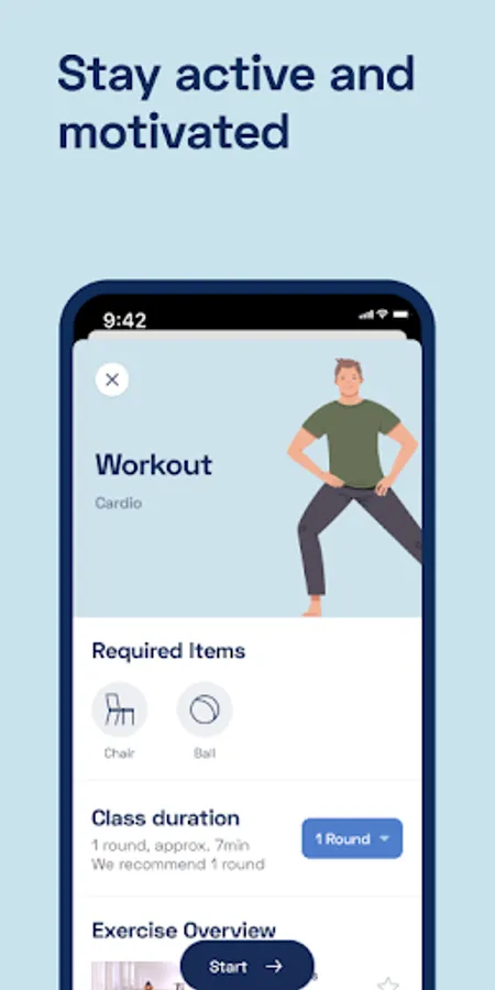 The movement training adapts to your fitness level, you determine the difficulty of the exercises.