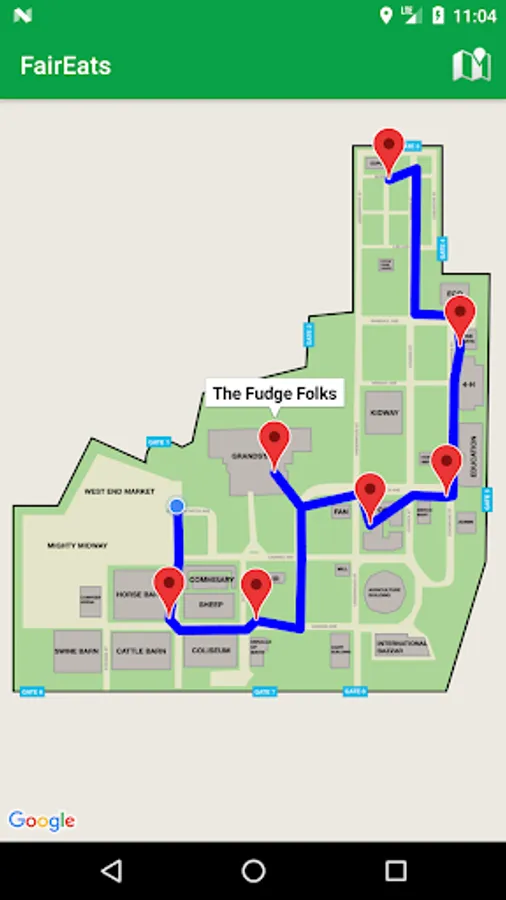 FairEats calculates the optimal route based on all the delicious food and beverages that you choose. Simply select your favorite food vendors or use the search bar to find what you are looking for. Click Find Foods to see the best route displayed on an easy-to-follow map.