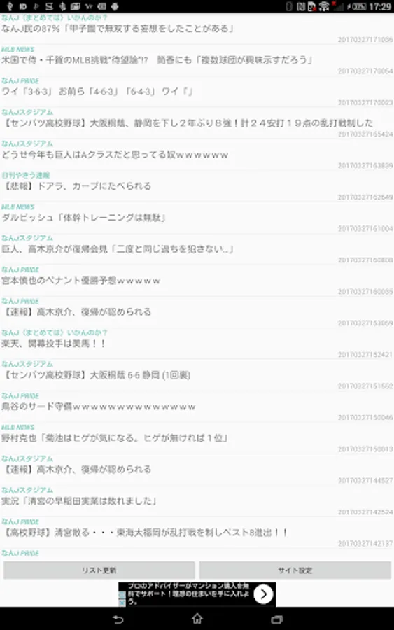・ Lists and displays article titles, site names, etc. related to baseball.