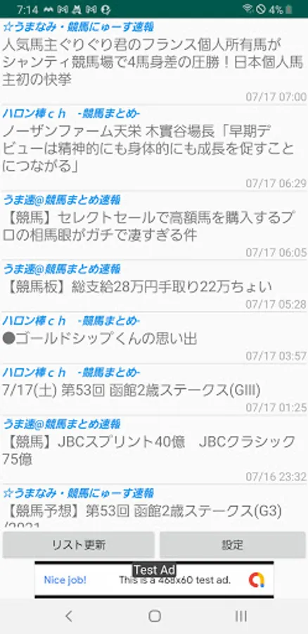 ・ Lists and displays article titles, site names, etc. related to horse racing.