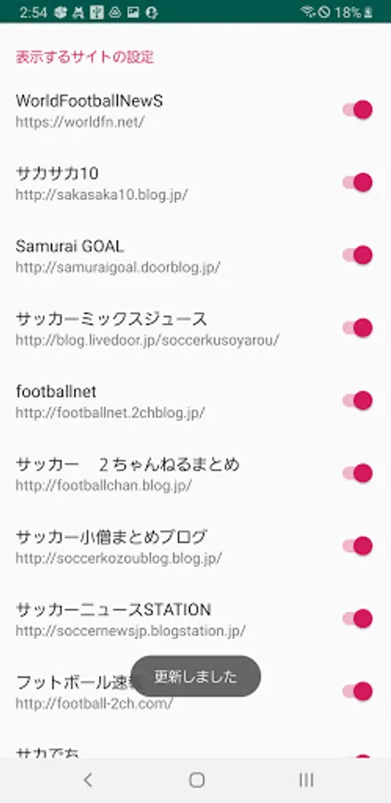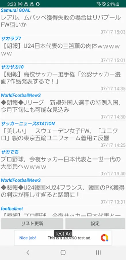 ・ Lists and displays article titles, site names, etc. related to soccer.