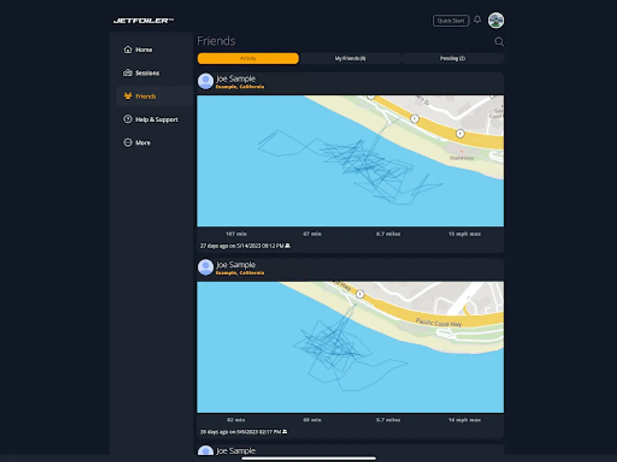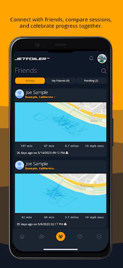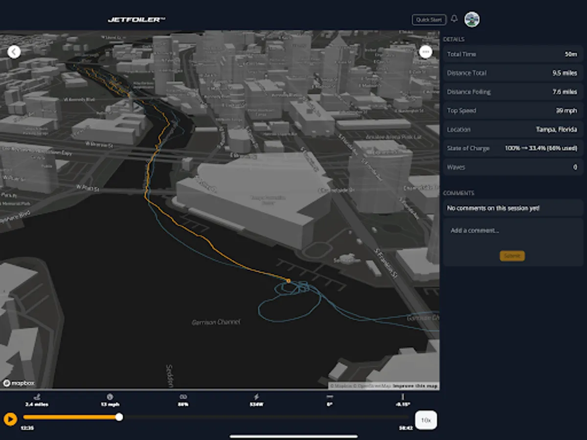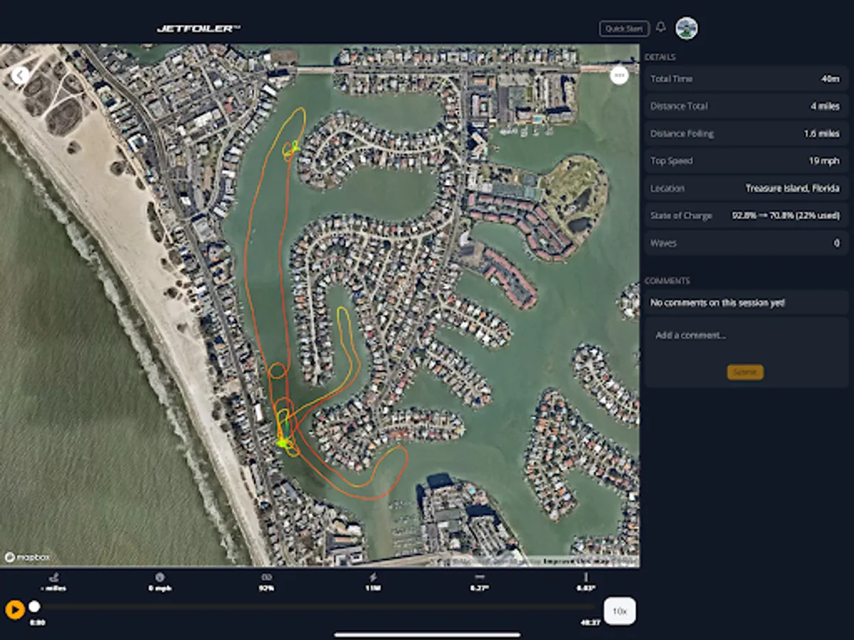 Be part of a community of eFoil enthusiasts. Jetfoiler lets you view your friends' sessions and those of public profiles. Leave comments, share your experiences, and find inspiration for your next ride.