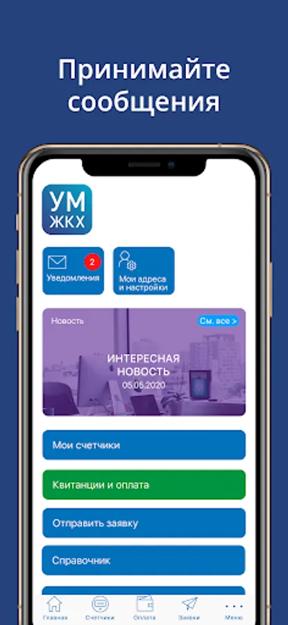 Take from the people with pictures of application, monitor the implementation of orders and collect feedback, get the meter readings that are integrated into your accounting system (1C, Oracle), sends a message to the residents without the cost of SMS.