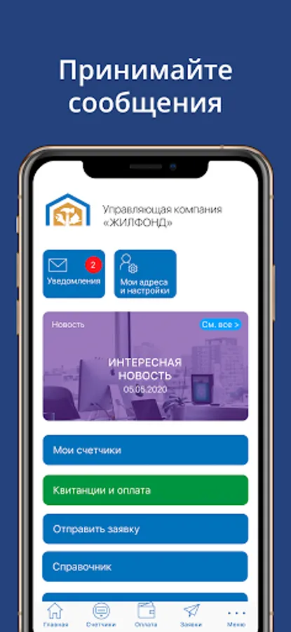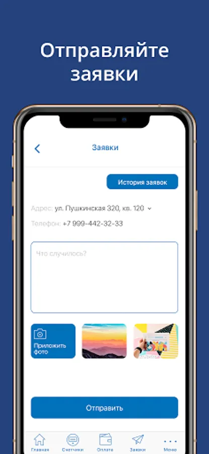 Отправляйте заявки с фотографиями, показания счетчиков, получайте важную информацию от управляющей компании!