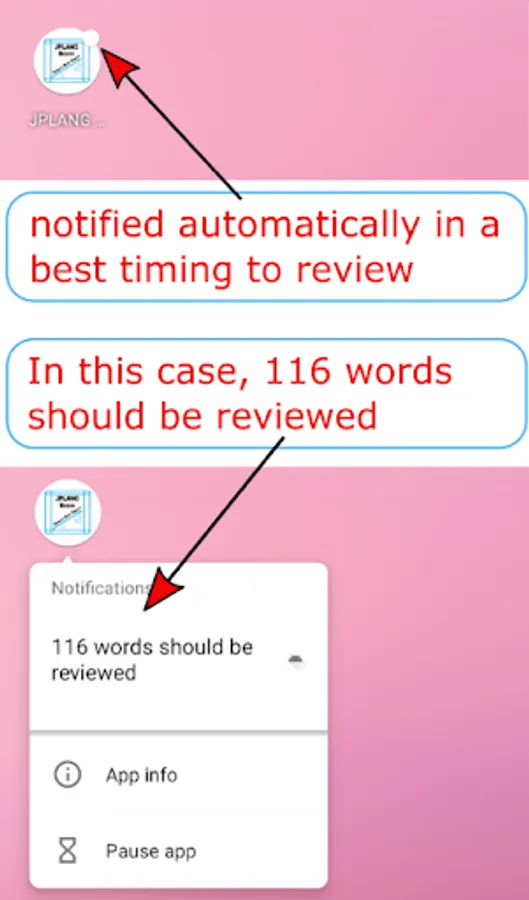 The app automatically notifies you of reviews at the best timing based on the forgetting curve. You can easily learn it by simply reviewing it when you get a notification from the app.