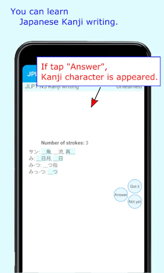 By using this concept, this app give you the optimal way to memorize Japanese language. That’s why you can learn Japanese language most effectively.