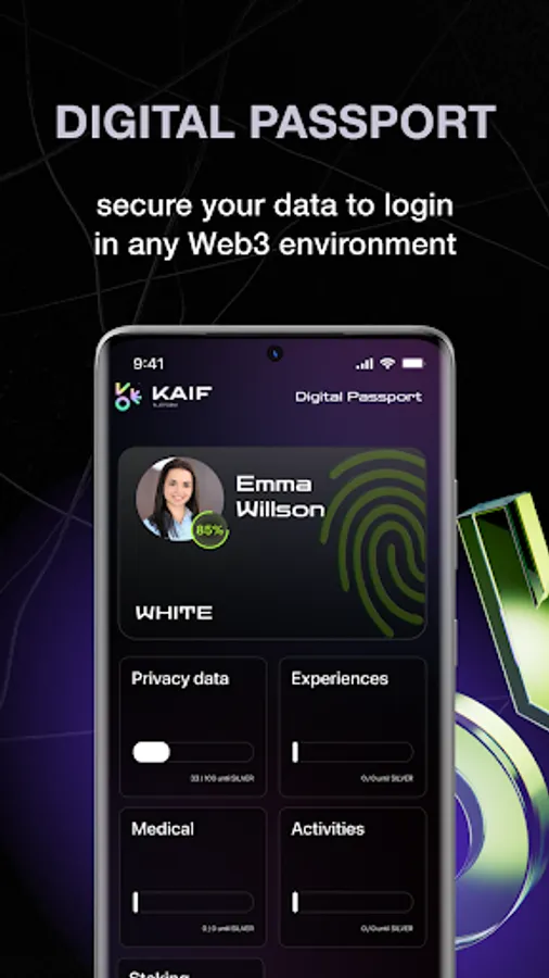 - KAIF Digital Passport is a digital identity based on non-transferable Soulbound Tokens (SBT), securing and protecting user data for logging into any Web3 environment.