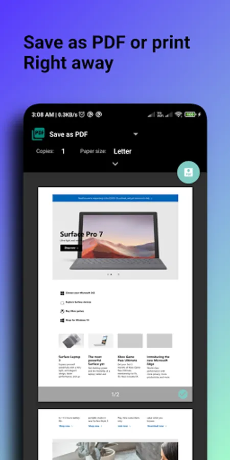 Save webpage as PDF or directly print from the app. Easy one.