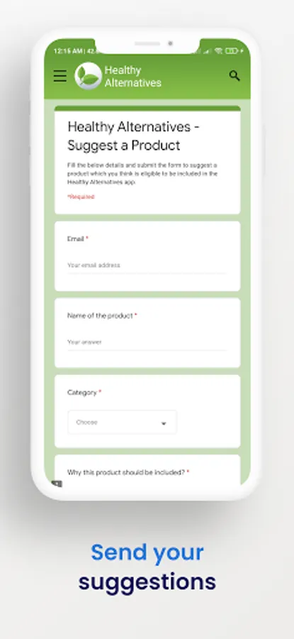 Healthy Alternatives app allows users to submit new product suggestions so that we can include them in the list.