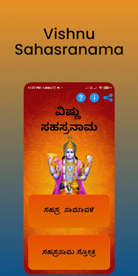 This is a Kannada Vishnu Sahasranama app which contains both Namavali and Stotra.