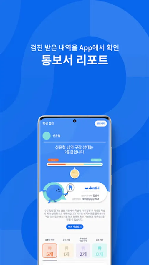 Seoul, Gyeonggi, Seongnam, Busan, Miryang, and Incheon are linked in real time with the participating dental hospital system, so you can easily and quickly check the results of your child's oral examination as a customized preventive report.