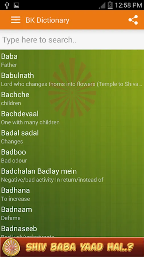 - App contains Words collected from Saakar & Avyakt Murlis.