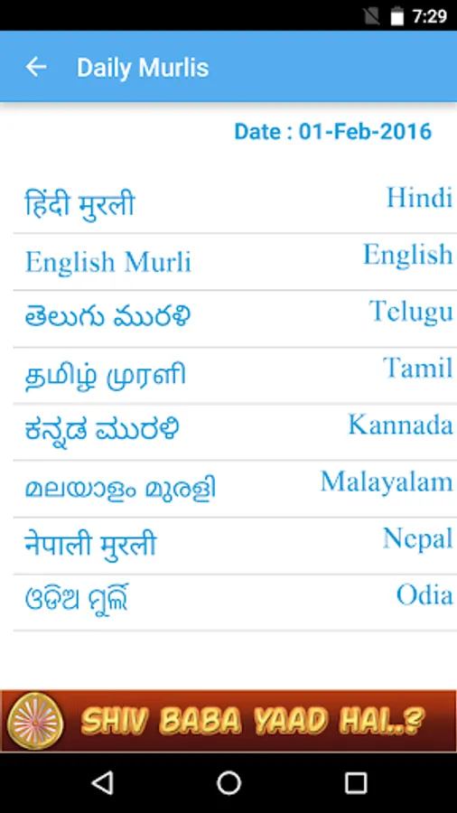 1. Baba Murli - Audio + PDF Murli in Hindi, English, Telugu, Kannada, Tamil, and all other regional languages.