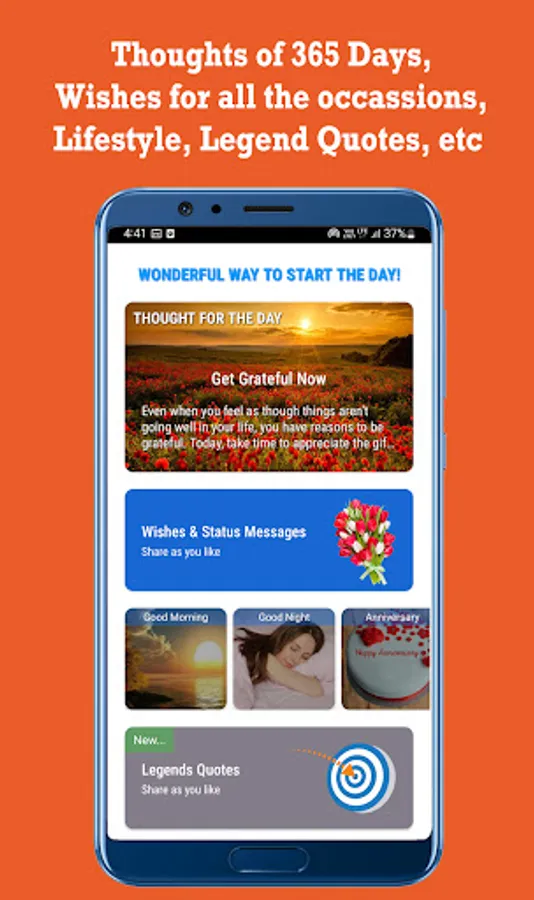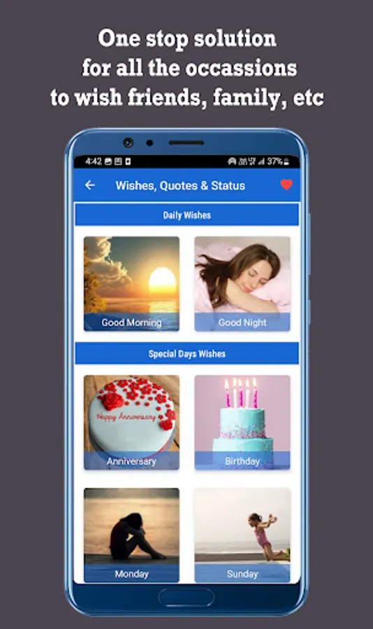 Added Wishes, Quotes and Status Messages for all kind of celebrations like Birthdays, Anniversary, Mother's Day, Father's Day and many more special occasions.