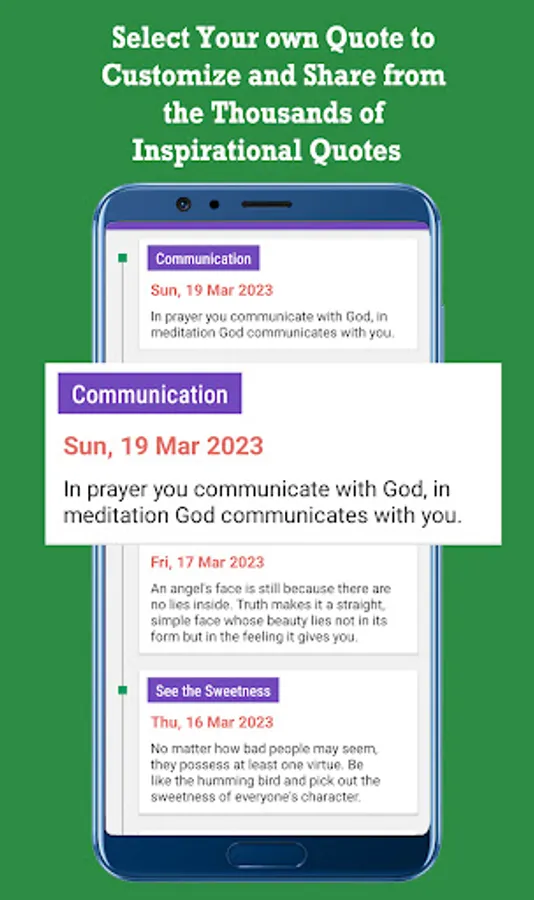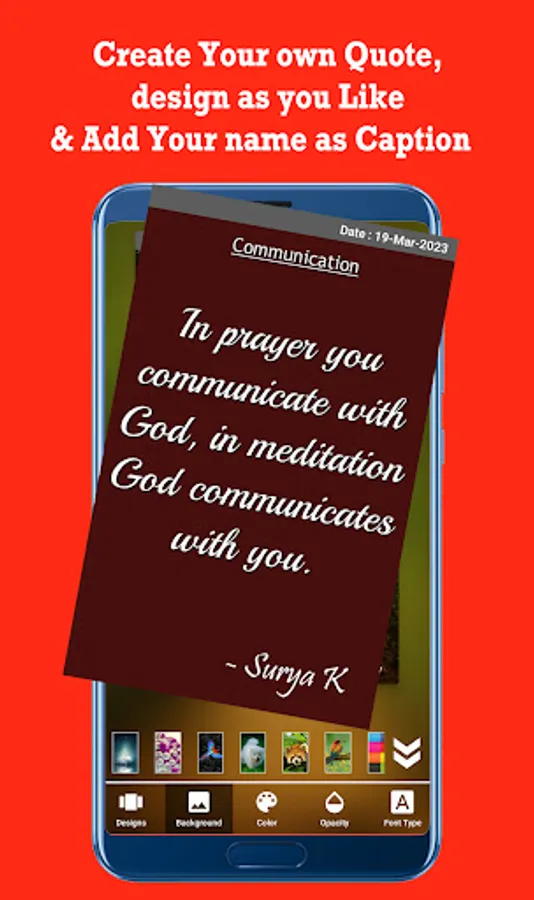 - Create your own Quote with customized text, background, background & Author as your name.