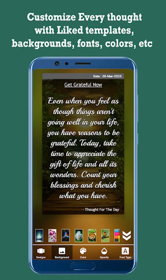 - Unlimited Background images and colors for different type of thougts.