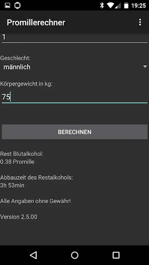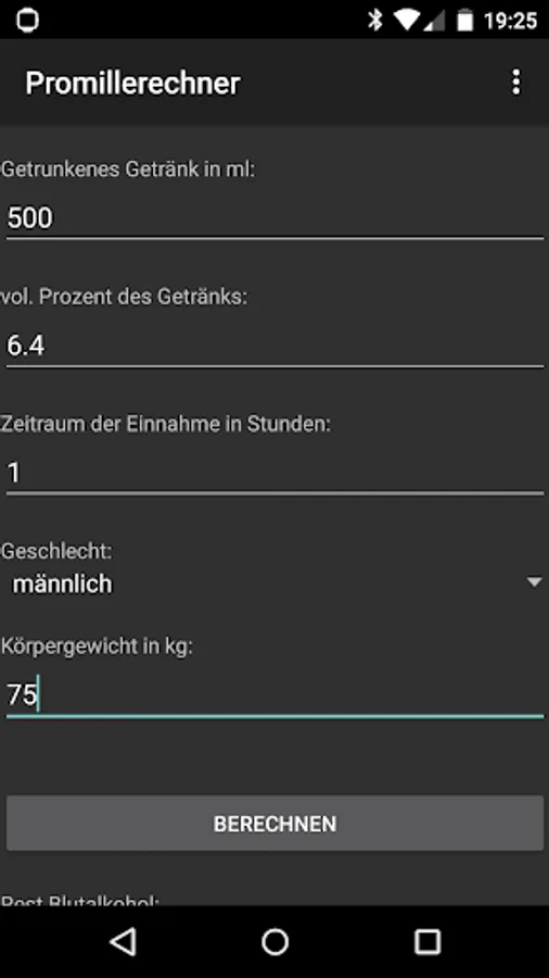 With the help of this machine can be the blood alcohol content (BAC) to calculate the intake of alcoholic beverages. Here, the time factor is considered.
