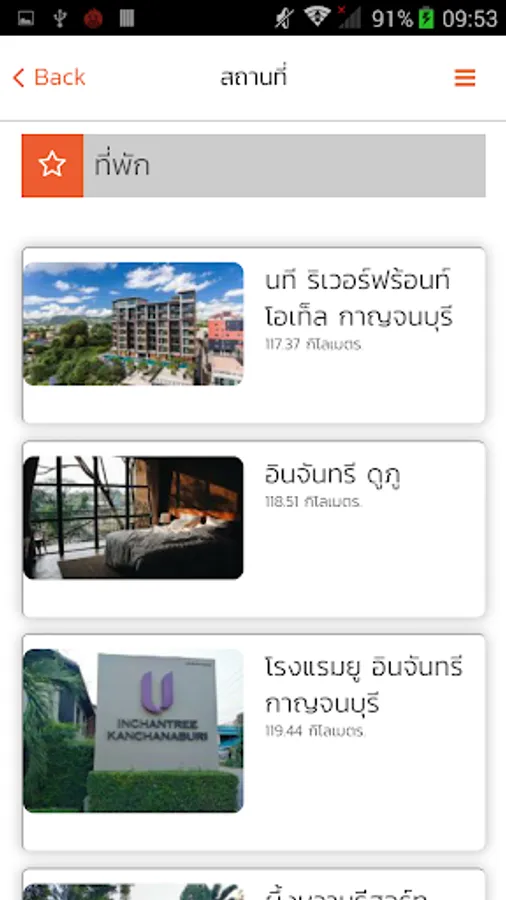The application introduces tourist attractions in Kanchanaburi. Users can