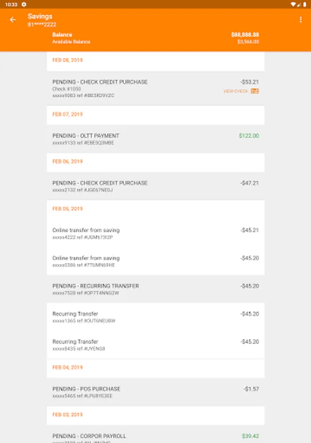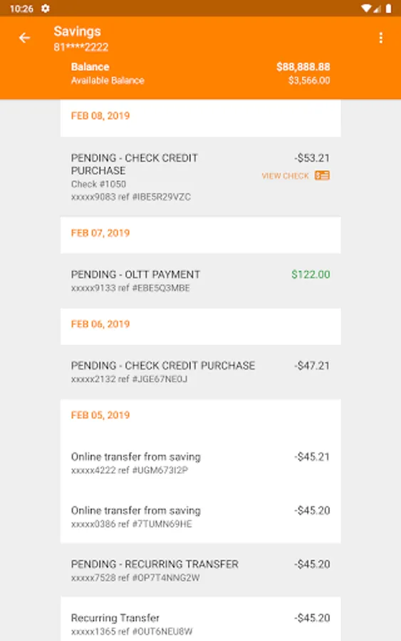 o Be able to see all your transactions from your mobile device. It is quick and easy to verify your purchases and see checks clear from your mobile device. Always have up to date information at your fingertips.