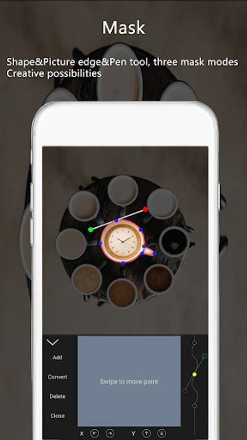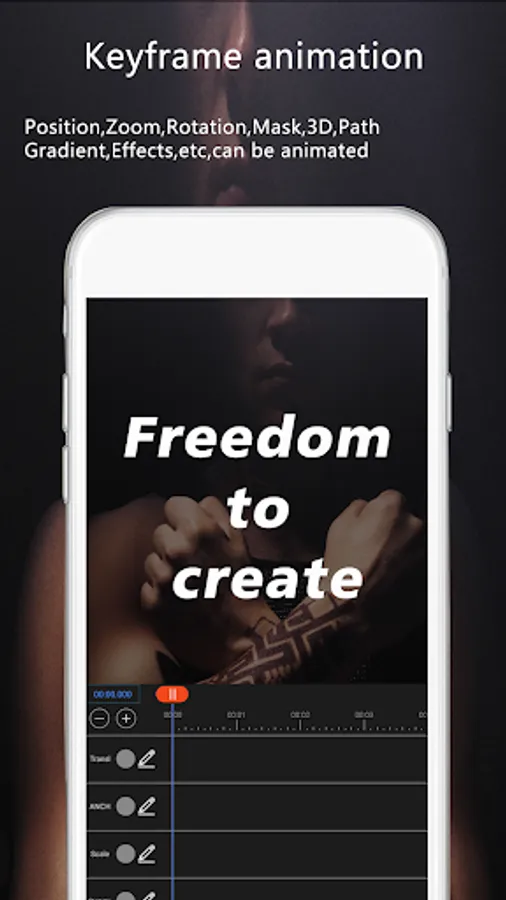 ★Mask animation: You can create keyframe animations for the path, expansion, scaling, rotation, position, and transparency of the mask