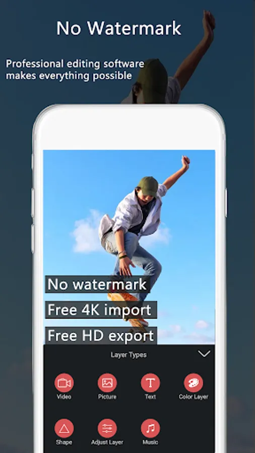★ Multi-layer track: There is no limit to the number of layers, and multiple videos, pictures, text, stickers, shapes, color layers, adjustment layers, and audio can be added at the same time for editing