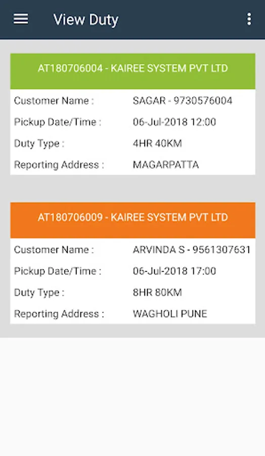 Driver can login and see upcoming duties assigned to him and perform the duties form inception to end.
