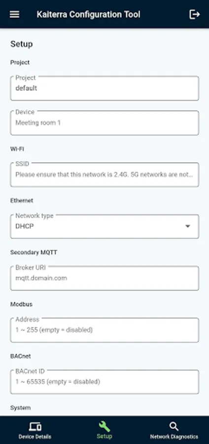Kaiterra Enterprise Configuration is intended to be used for setting up air quality monitors manufactured by Kaiterra, such as Sensedge Mini or Sensedge Square.