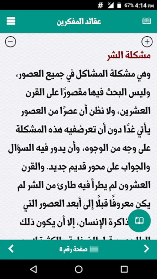 In this book, Al-Akkad follows the theories and scientific hypotheses such as the theory of evolution, the Copernicus, and the materialistic scientific laws. The problem of the existence of evil in the world also raised the minds of the philosophers. In the view of these theories and philosophical ideas were the cause of atheism and denial; when embraced by some and make it a substitute for religious beliefs.