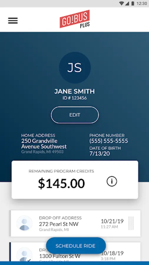 The GO!BusPlus app is a ride scheduling app intended for use by participants in the GO!BusPlus pilot in Grand Rapids, Michigan.