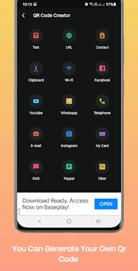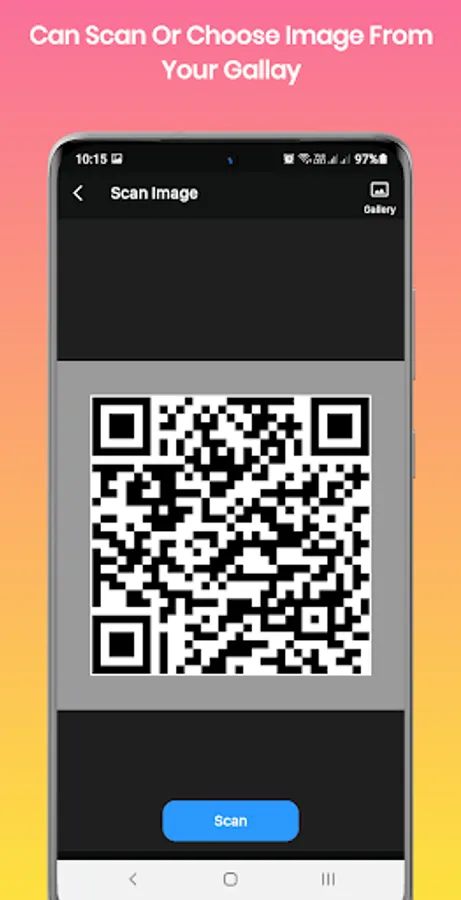 Other functions: create QR, scan images, scan from gallery, share your contact information via QR.