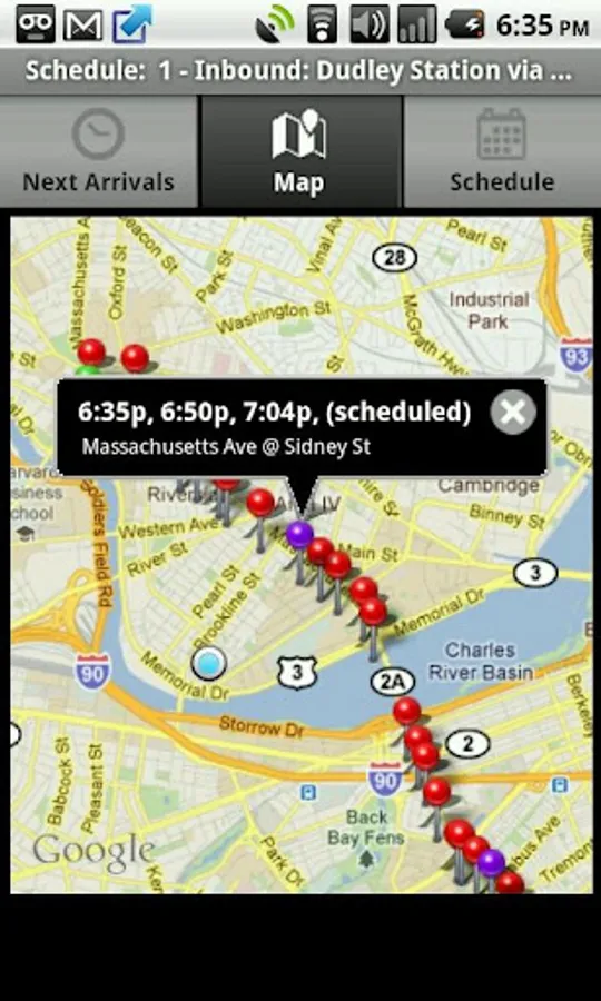 OpenMBTA is a free open source mobile app which provides transit schedule information for the Boston MBTA metro system. When available, real time schedule will be presented, highlighting the closest stop to your current location.