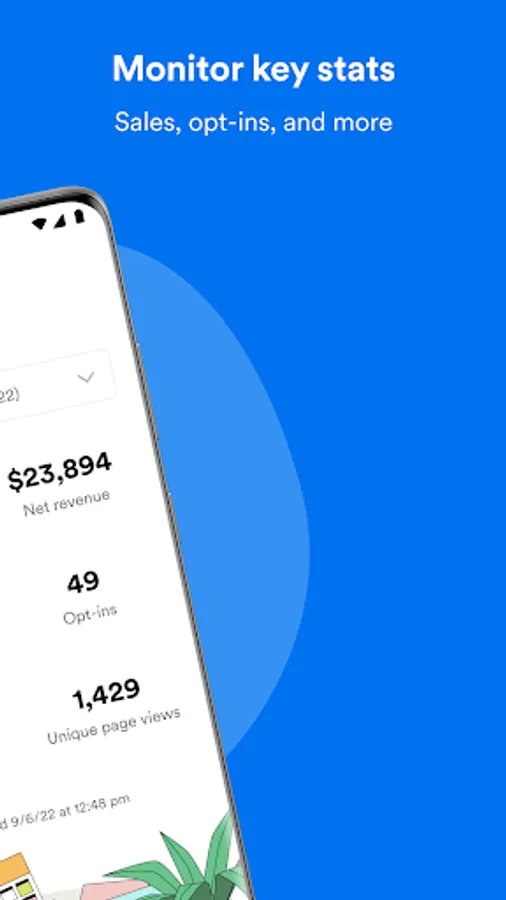 ■ Monitor key stats. Stay up to date on the health of your business with updates on net revenue, opt-ins, page views, and much more.