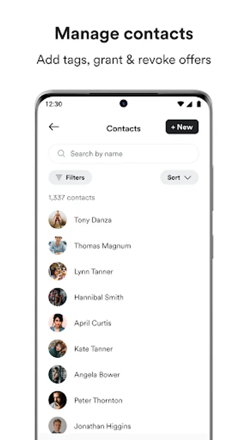 ■ Contact management. View, add, manage, tag, and edit contacts. You can also grant & revoke offers while on the go.