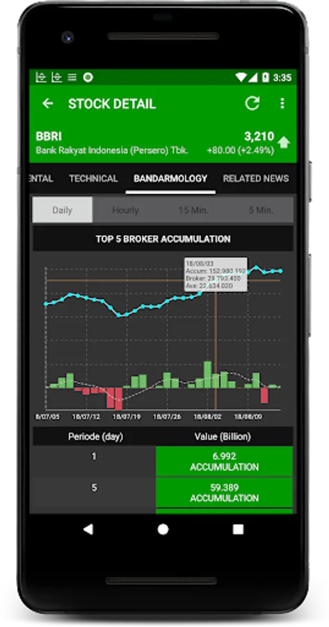 - Accumulation distribution data based on top broker transaction (Net top buyer - Net top seller)