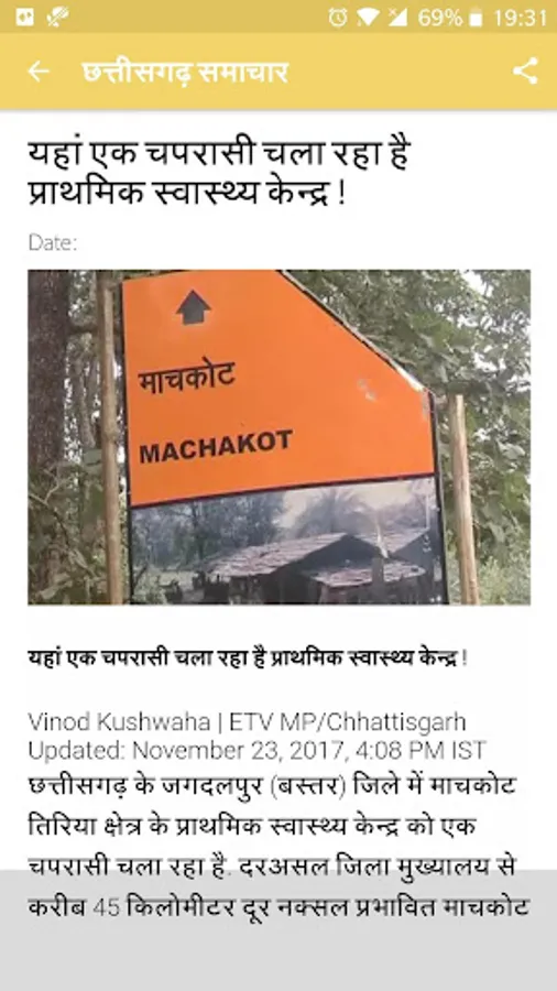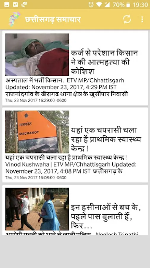 Get the top breaking ETV Chhattisgarh News in Hindi on your android smart device from famous news channel website, stay updated with latest news from छत्तीसगढ़ via official news channel. Get various current affairs articles & stories on business, cultural, political, sports, tours & travels and others.