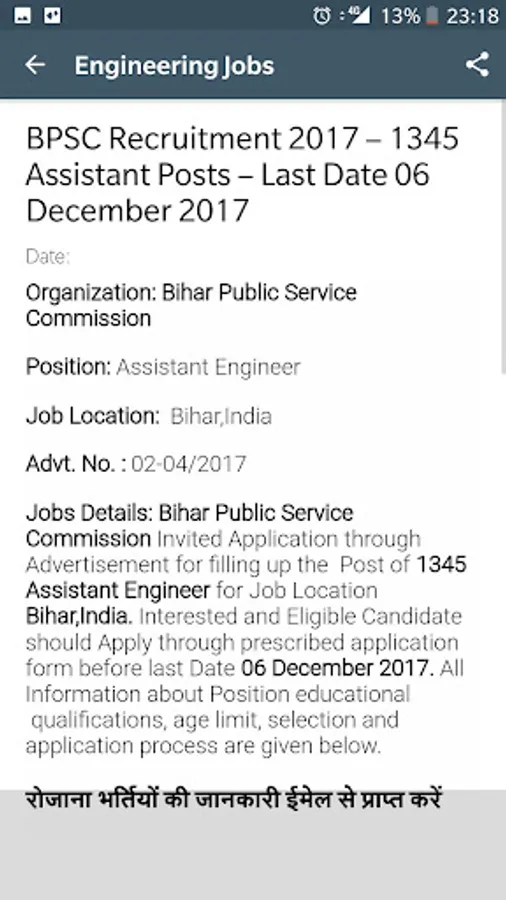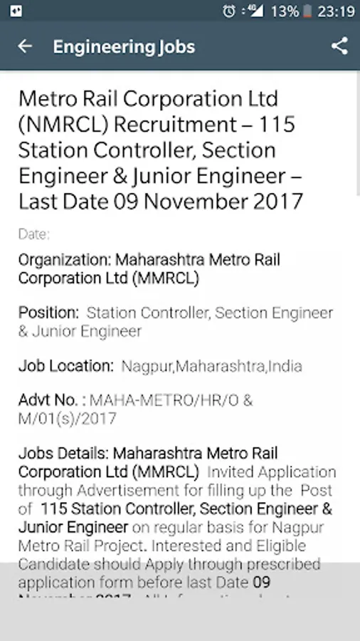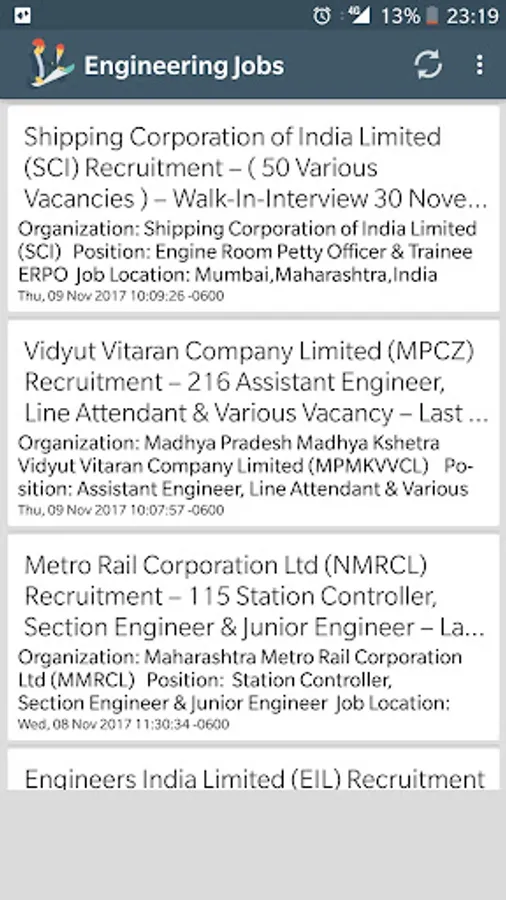 All Engineering Jobs alert app will help you browse every detail about a particular Engineering Jobs. We cover all possible categories & locations. Aspirants can easily come across Free Job alerts throughout the day.