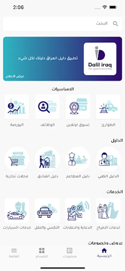 One of the features of our application is also its creation of an internal communication platform that allows the owners of commercial and service interests of various specializations to share publications and interact with visitors to the application who are interested in the service, in addition to that our application supports several languages such as Arabic, Kurdish and English.