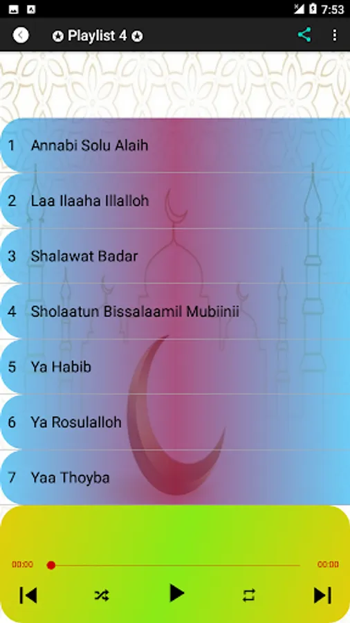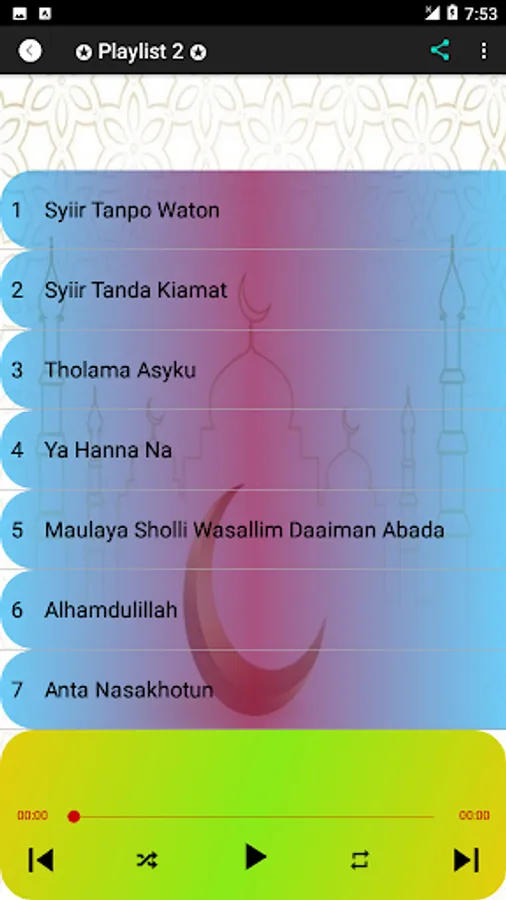 This application is a music player application that presents various kinds of prayer collections which are delivered in a unique way by Habib Syech. Many kinds of sholawat songs are contained in this application. Among other things, there are several Javanese sholawat chants.
