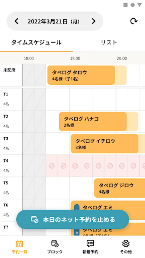 From the "Time Schedule" screen, you can easily stop accepting today's online reservations.