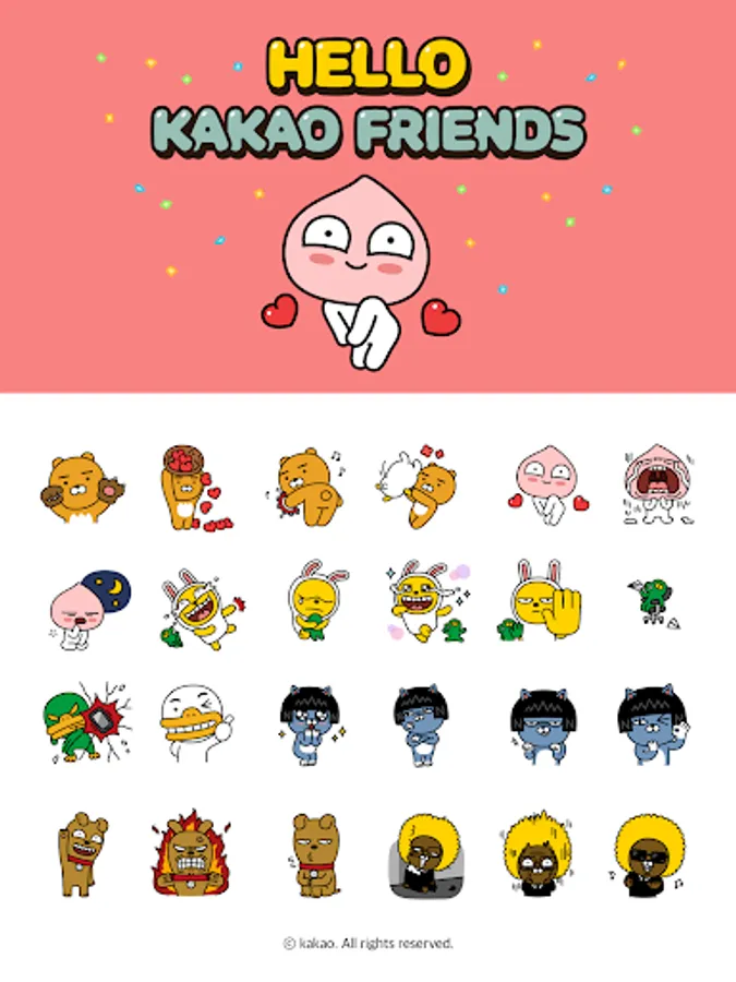 One of the most popular characters in Korea, KakaoFriends, is now available. Make your chats more fun and dynamic using KakaoFriends emoticons!