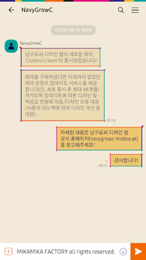 This is [Cimero Cream], the fifth KakaoTalk theme presented by NavyGrowC Design Lab.