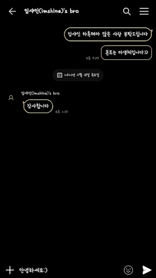 KakaoTalk app > settings (gear wheel) > All settings > Themes > Select from User Themes