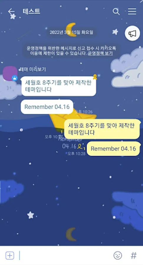 This is a KakaoTalk theme created to commemorate the 8th anniversary of the Sewol ferry.
