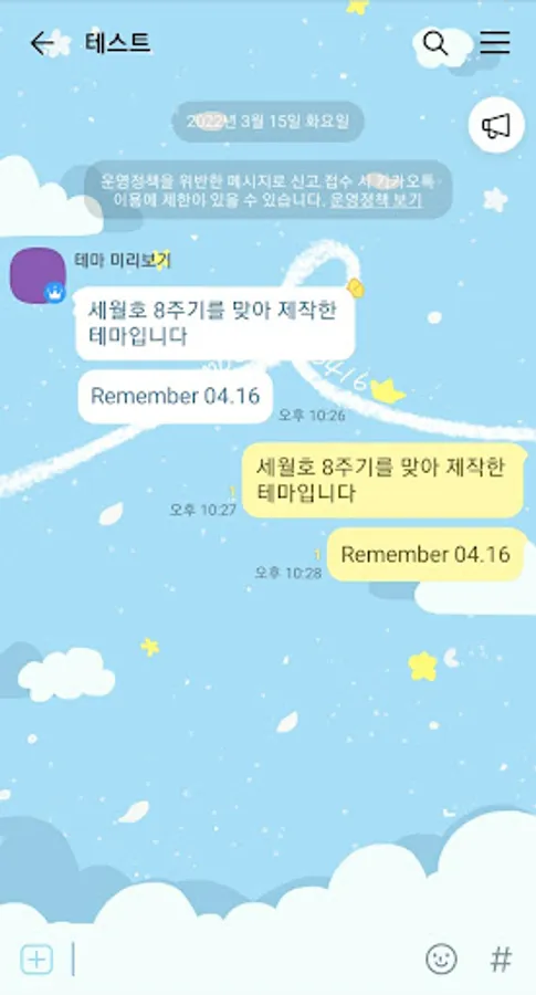 This is a KakaoTalk theme created to commemorate the 8th anniversary of the Sewol ferry.