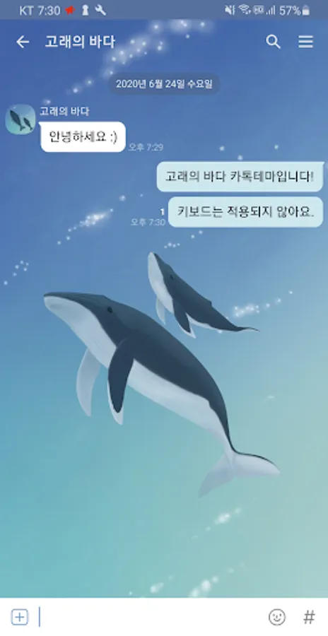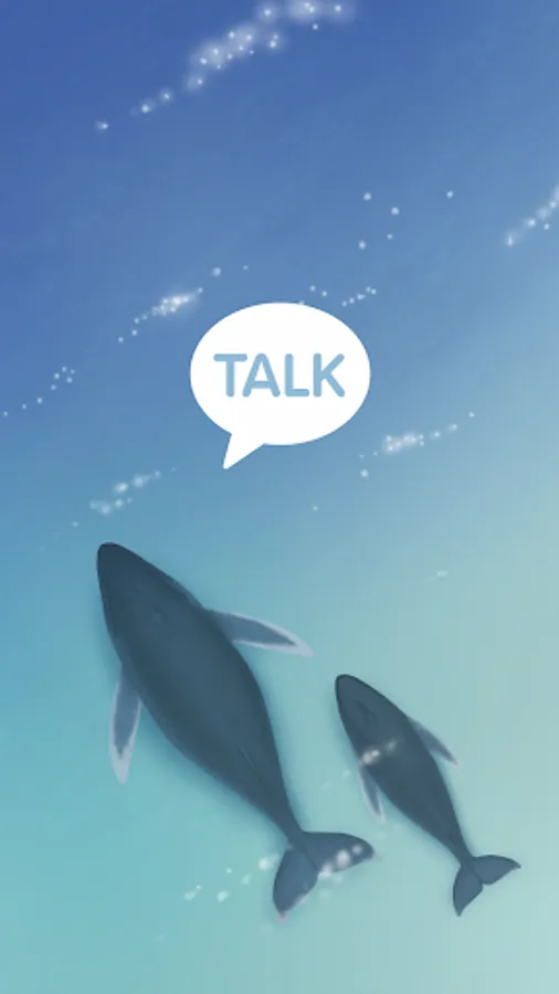 KakaoTalk theme for mother and baby whales living freely in the blue sea.