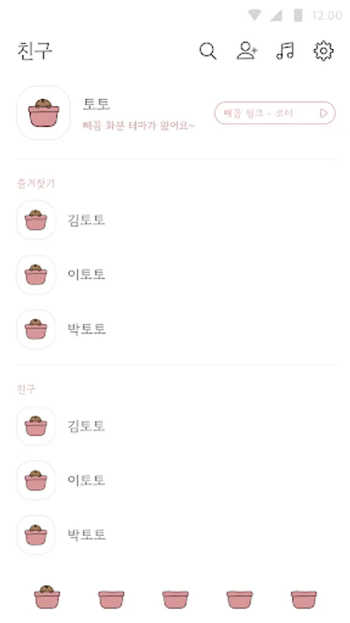 Try the cute soil fairy, Toto Plucked Flower Pot Pink KakaoTalk theme!